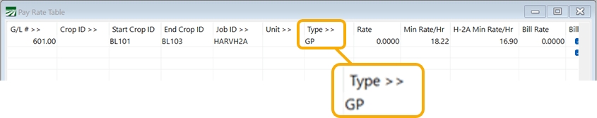 If you only need to apply one rate per employee, you can simply enter the H-2A rate in the Pay Rate entry of the Employee file. As long as piecework is entered with the GP Wage Type and the Minimum H-2A rate in the State Tax Rate file is the same or lower, the program will adjust to the employee’s respective rate.