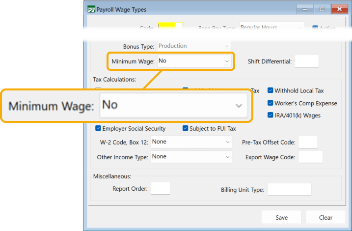 Some customers choose to define the AEWR rates with their data collection software and would like to have all the calculations done in that system before bringing the data into Datatech Software. In this case, the program would have to be set so as not to perform any minimum wage calculations.
